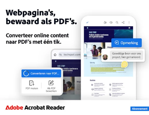 Adobe Acrobat Reader transformeert de manier waarop u met documenten omgaat. Ontdek de ultieme oplossing voor het moeiteloos bekijken, beheren en interageren met PDF's. De krachtige functies van Adobe's Fill & Sign-app zijn nu volledig geïntegreerd, waardoor u formulieren razendsnel kunt invullen, elektronisch ondertekenen en veilig versturen, zelfs door simpelweg een foto van een papieren document te maken en dit direct op uw mobiele apparaat te verwerken. Geniet bovendien van een ongeëvenaarde leeservaring met de innovatieve Liquid Mode, die documenten naadloos aanpast aan uw scherm en snelle navigatie en aanpassing van tekst mogelijk maakt.