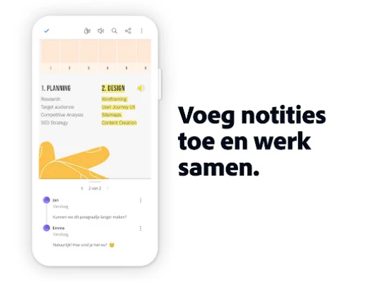 Samenwerking wordt kinderspel met Adobe Acrobat Reader. Voeg eenvoudig opmerkingen, markeringen en persoonlijke aantekeningen toe, of verzamel feedback van collega's op één centrale plek. Synchroniseer uw werk naadloos over al uw apparaten door in te loggen op uw gratis Adobe-account en koppel externe opslagdiensten zoals Google Drive en Dropbox voor universele toegang. Werk efficiënt met gescande documenten en transformeer ze naar bewerkbare en ondertekenbare bestanden. Ervaar zelf de volledige potentie van Adobe Acrobat Reader met een gratis proefperiode van 7 dagen, en ontdek waarom deze app de voorkeur geniet van zowel individuen als Enterprise Mobility Management (EMM)-gebruikers voor hun documentbehoeften.