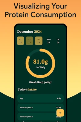 Het moeiteloos bijhouden van uw eiwitconsumptie is de kern van Our Protein Tracker. Stel persoonlijke doelen in en laat de intelligente rekenhulp u gidsen naar succes, zodat u gefocust blijft op het bereiken van uw lichaamsdoelen. De flexibiliteit is ongeëvenaard; registreer innames voor elke datum – heden, verleden of toekomst – zonder verborgen kosten. Bovendien maakt de functie voor snelle favorieten het mogelijk om uw meest gegeten eiwitbronnen direct vast te leggen, wat kostbare tijd bespaart en het loggen tot een fluitje van een cent maakt.