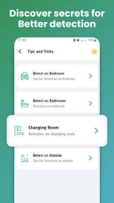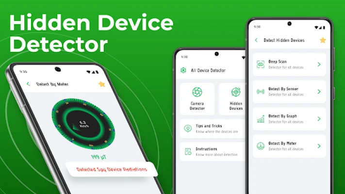 Bescherm uw privacy effectief met All Devices Detector finder. Deze app detecteert verborgen camera's, microfoons en andere bewakingsapparatuur in hotels, kleedkamers of thuis. Gebruik de magnetische sensor van uw telefoon om ongewenste afluisterapparatuur te vinden en zo uw veiligheid te waarborgen tegen spionage.