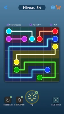 Dot Link biedt een schat aan uitdagingen met ruim tienduizend levels, verdeeld over vijf oplopende moeilijkheidsgraden, variërend van 'Beginner' tot 'Gek'. Of je nu behoefte hebt aan een snelle denkoefening of een diepe strategische duik, er is altijd een passende puzzel. De serene soundtrack en kalmerende geluidseffecten dragen bij aan een ontspannen speelervaring, terwijl praktische functies zoals de Dag- en Nachtmodus en een kleurenblindoptie zorgen voor optimale zichtbaarheid en toegankelijkheid voor iedereen. Mocht je even vastlopen, dan bieden de handige 'Ongedaan maken'-optie, de mogelijkheid om opnieuw te starten, of een discrete hint uitkomst.
