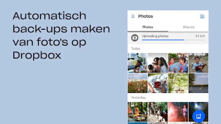 Verlies nooit meer een waardevol moment of belangrijk document. Dropbox transformeert de manier waarop u uw digitale leven beheert, door al uw bestanden veilig op één centrale plek te bewaren. Of het nu gaat om dierbare foto's van uw camerarol die automatisch worden opgeslagen, of cruciale werkdocumenten, Dropbox zorgt ervoor dat alles altijd binnen handbereik is. Zeg vaarwel tegen volle telefoons en zoekgeraakte bestanden; met Dropbox heeft u overal toegang tot uw complete digitale archief, zelfs zonder internetverbinding en kunt u bovendien voorbeeldweergaven van meer dan 175 bestandstypen bekijken zonder speciale software.