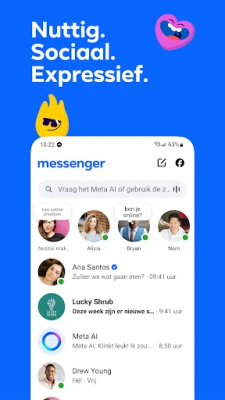 Messenger is dé gratis berichtenapp om overal contact te leggen. Blijf verbonden met vrienden en familie, ontdek nieuwe interesses met gelijkgestemden en bouw je community op. Deel je vibes en meer dan alleen woorden, alles binnen één krachtige app.