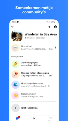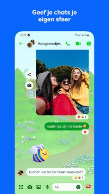Verbreed uw horizon en maak betekenisvolle contacten binnen communities die uw passies delen, of het nu gaat om uw school, buurt of specifieke hobbygroepen. Blijf dicht bij uw favoriete makers door hun exclusieve uitzendingskanalen te volgen en toegang te krijgen tot unieke, informele content. Geef uw chats een persoonlijke touch met een uitgebreide verzameling thema's, van populaire artiesten tot feestdagen, en fleur gesprekken op met geanimeerde stickers, GIF's en diverse reacties. Leg vluchtige momenten van uw dag vast in Verhalen die na 24 uur vervagen, of deel korte gedachten als Notities om uw vrienden moeiteloos op de hoogte te houden. Nieuwe contacten leggen in de fysieke wereld is bovendien eenvoudig: scan simpelweg een Messenger QR-code of deel die van uzelf om direct te verbinden.
