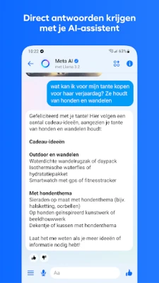 Druk uzelf rijker uit dan ooit tevoren. Deel uw meest dierbare momenten met haarscherpe HD-foto's en creëer gezamenlijke albums om herinneringen, van vakanties tot familiefeesten, binnen groepschats te koesteren. Grote bestanden, of het nu Word-documenten, PDF's of Excel-spreadsheets zijn, tot wel 100 MB, zijn moeiteloos te delen. Bovendien staat de geavanceerde Meta AI tot uw dienst, als een intelligente assistent die vragen beantwoordt, waardevol advies geeft en zelfs creatieve ideeën helpt omzetten in beelden en animaties, waardoor uw fantasie de vrije loop krijgt.