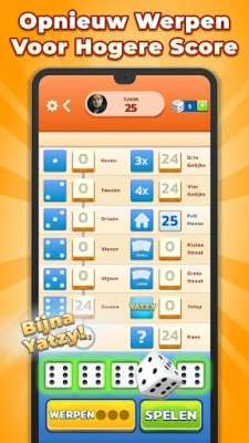 Stap in de wereld van Yatzy, het tijdloze dobbelspel dat even spannend als strategisch is. Of je nu een doorgewinterde dobbelsteenmeester bent of nieuw bent met dit iconische spel, Yatzy biedt een razendsnelle en toegankelijke ervaring voor iedereen. Met elke van de 13 rondes krijg je de kans om vijf dobbelstenen tot driemaal toe te werpen. Jouw missie? De hoogste score behalen door de dertien unieke dobbelsteencombinaties slim te voltooien. Elke combinatie kan slechts één keer worden benut, dus elke beslissing telt en kan het verschil maken tussen winst en verlies.